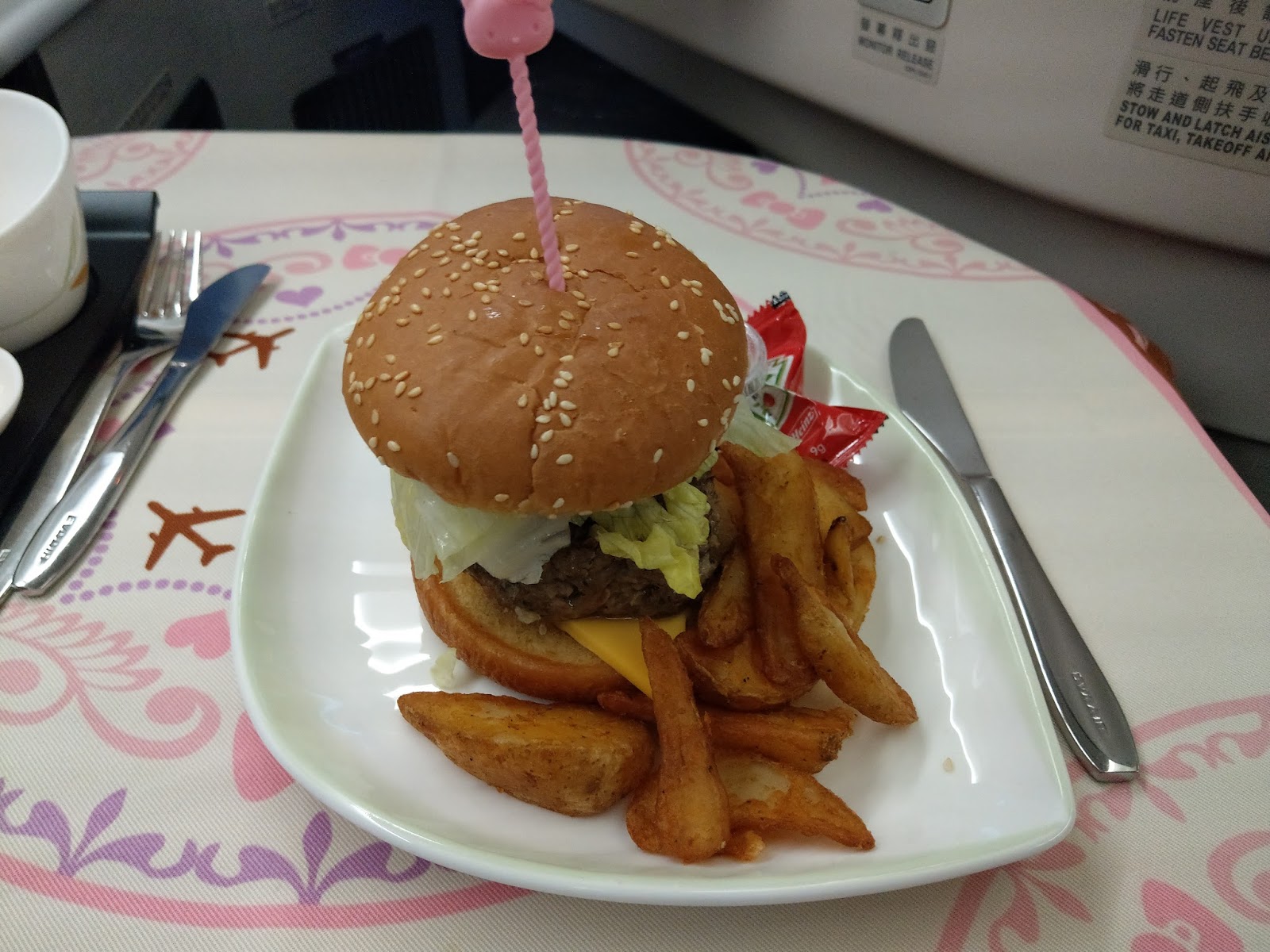 因為在貴賓室吃太飽了,所以機上主餐就換成漢飽了。