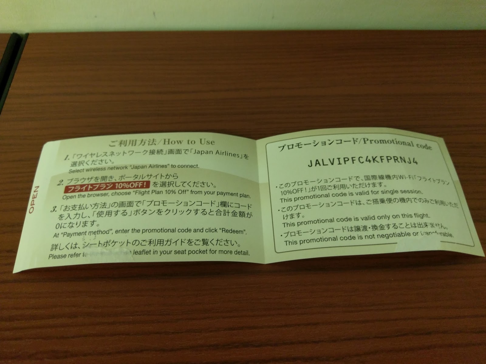 座位上有附一張機上免費 WiFi 的密碼。